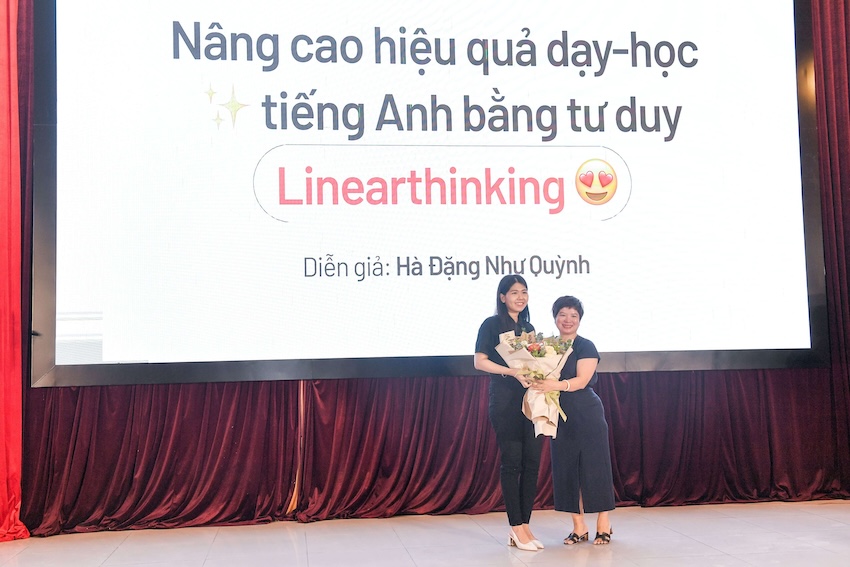 Trao đổi trong buổi tập huấn, diễn giả Như Quỳnh đã giới thiệu phương pháp dạy học mới theo tư duy Linearthinking và những điểm vượt trội của phương pháp này so với phương pháp dạy học ngoại ngữ truyền thống. Đặc biệt, diễn giả đã phân tích kỹ về cách thức biến những vấn đề phức tạp trở nên đơn giản, dễ hiểu, dễ tiếp cận cho học sinh khi học tiếng Anh nhờ tư duy Linearthinking.